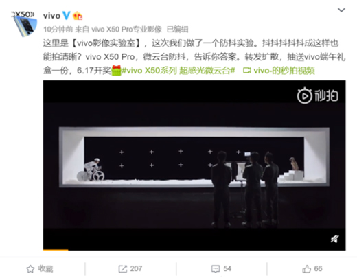 vivo X50系列正式发布已有十天,而X50 Pro所搭载的超感光微云台话题热度依旧不减。6月10日,vivo官微发布一则来自vivo影像实验室的防抖对比视频,通过三个级别的抖动场景,全方位展现了vivo X50 Pro微云台技术的防抖实力,吸引了网友的广泛关注。