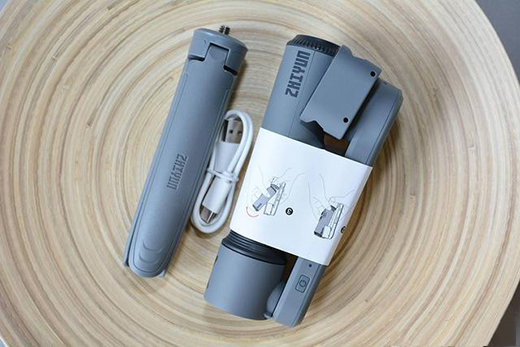 智云Smooth-X手机智能云台拿出来看,比以往的手机云台/稳定器都要更小巧,因为采用了折叠的形式,手机架和手柄均处于锁定状态,整身收紧在一起,看上去很紧凑,折叠后尺寸65*56*145mm。手机云台主体与支架也是分段设计的,节省了很多空间。