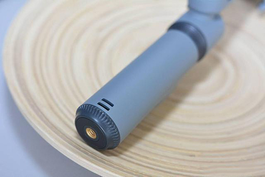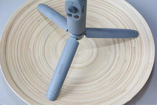 手柄底部有一个1/4的通用螺孔,可与自带的三脚架相连,这样能在平面上拍摄更稳。另外,还可以自己选择挂绳,挂在手柄底部的开孔上。