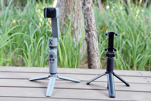 对于Smooth X来说,在云台的基础上增加了延长杆,这也和普通的自拍杆一样更加实用,解决了“稳定但不够长、够长但不稳定”的问题,能拍出不同的角度和高度,配合超广角镜头从而增加覆盖的画面。相对于之前的三轴云台,折叠后长度是变短了,很方便的就能塞进包包里。不过在体积重量上相比小米的自拍杆还是有一点略重的。
