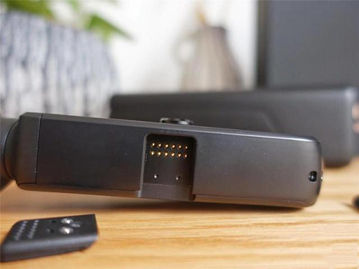 机身正面除了两颗控制按键外,还有一颗万向摇杆,用过手机稳定器的朋友应该很清楚万向摇杆用起来有多方便,不管是做平移、滚动还是俯仰动作,都能通过摇杆很轻松的实现。