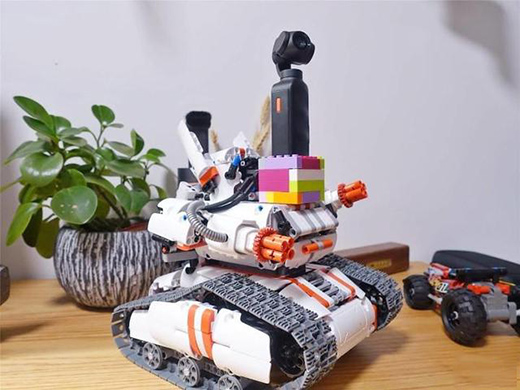 有点小不足的是,因为这款云台相机发布时间还不长,各种周边配件目前很难找到,对于需要扩展功能的用户来说有点头疼,比如我想将这款云台相机固定到米兔履带车上,就只能自己想办法用乐高积木搭一个固定底座……