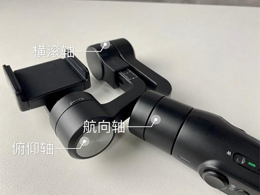 飞宇Vimble 2s是一款三轴稳定器,先给大家说一说什么是三轴。如下图,飞宇Vimble 2s包含了俯仰轴、航向轴和横滚轴三个轴,其中俯仰轴控制云台纵向角度变换,航向轴控制云台左右旋转,也就是左右方向的改变,而横滚轴链接横臂和竖臂的轴,控制云台横向滚动。三轴配合能够实现实现俯仰320°、横滚320°、航向320°的变换,拍摄无死角。