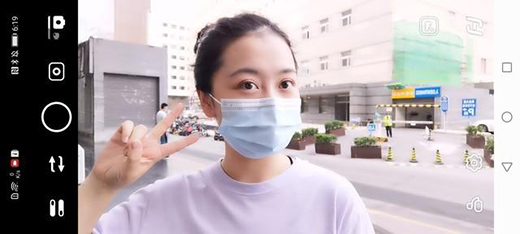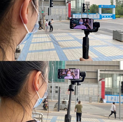 加入了延长杆的设计,与不延长模式对比下来我们可以看到能够拍摄出更广阔的画面,即使不用伸长手臂也能拍摄到人物身后的画面,在视频中也不是一张大脸占满大半屏幕,对于用户来说使用感还是不错。