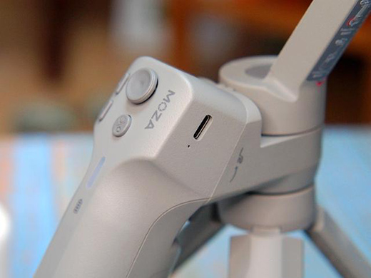 这次魔爪MX不走寻常路,把三脚架孔位置设计在了转轴的下面,达到整机完美平衡度。而稳定器的高度也没有太多变化,这样的设计也算是别出心裁。美观度也比三脚架孔在手柄下方的要好看不少。MX依然是采用TypeC充电口,充电速度还算不错,后期使用也是比较方便。