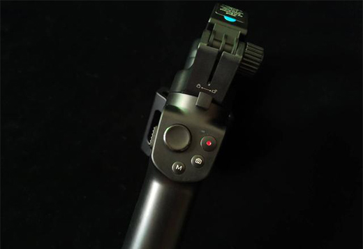 握手处设有4颗按键,大圆圈为四向摇杆,可上下左右摇动进行方向控制;红点为录像按键,一键切换至录像模式;有个相机标志的按钮则为拍照按键,拍摄vlog过程中,遇到精彩的画面也可直接进行抓拍,不再手忙脚乱;M按键则为功能按键,可轻松实现横竖拍摄模式,助你轻松玩转直播、短视频。