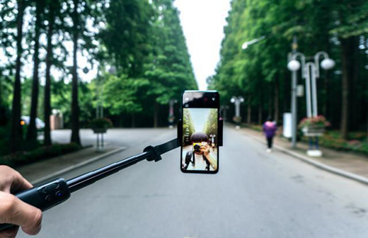 握住手柄和竖臂拉伸,就可以将Vimble One的延长杆展开,18cm的延长杆长度虽然没有自拍杆展开后长,但恰好可以满足我们日常自拍使用需求。