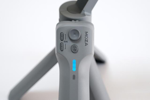 魔爪Mini MX简化了按键设计,这样便于操控。在手柄的正面上方设有摇杆、功能键和两个变焦键,其中变焦键通过长按、单击和双击,功能键通过长按、单击、双击和三击都可以实现不同的操作指令。在功能键下方是电量指示灯,方便用户了解电量剩余情况。