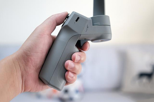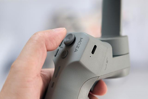 不只是摇杆,魔爪Mini MX的手柄也符合了人体工程学设计,它采用一定的倾斜角度设计,加上手柄背面做了蒙皮处理,所以握持时贴合手掌,而且舒适度高,加上稳定器本身就轻巧,所以即使长时间的手持拍摄,手腕也不容易酸疼。