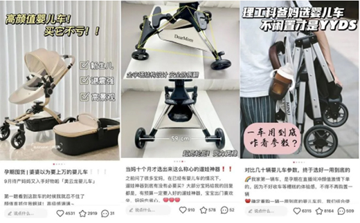 细细拆分用户搜索特征,小红书发现,「低价格」普遍不是打动母婴出行大件消费者的核心。相比之下,“这款婴儿车是否适配全年龄段宝宝?”、“这个安全座椅是否足够安全?”、“这款颜值高的遛娃神器还有多少种功能?”等才是影响用户决策的关键。