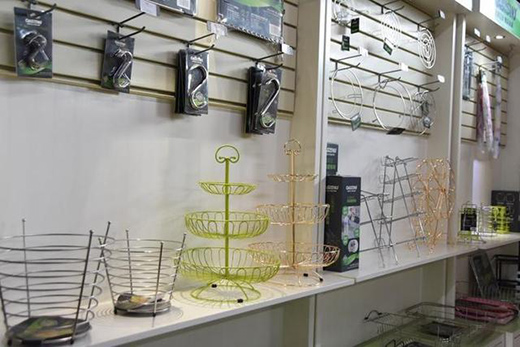 香槟金的多层果盘、多功能烧烤架、各种样式的衣架、置物架……推开二楼样品间的大门,琳琅满目的金属制品直击眼球,在室外阳光的映衬下,熠熠发光。