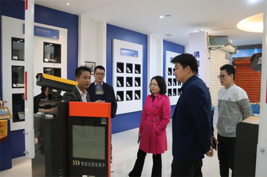 胡总、梁总一行人先后参观了公司产品展示、生产车间、办公领域等,对巨光公司经营发展成绩给予高度评价。