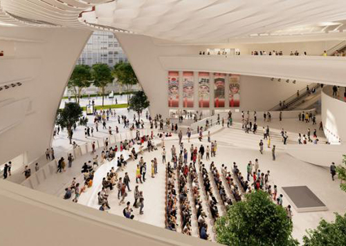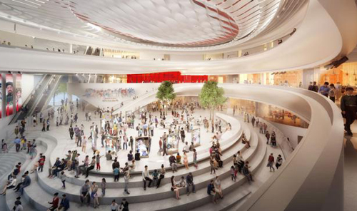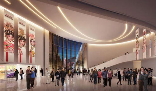 作为一个文化圣地,该项目包含了戏剧、艺术和沉思的各个空间,其设计灵感来自于“珠帘后的灯所发出的柔和光芒,”这照亮了面向街道的四个开口和建筑立面上的一系列灯箱。该中心的形成重新定义了中国传统主题的特色文化区–主要由Foster + Partners 设计–表达了“气”的概念和流通的曲线路径及要素。