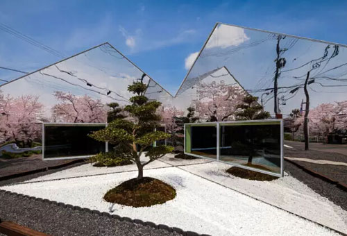 David Hertz Architects事务所认为材料的大胆运用往往会产生艺术效果,这是对Patrik Schumacher的断言“建筑不是艺术”的有力冲击。如果这也是一个“规则”那么这无疑是许多公司都在试图打破的规则,在这个过程中产生了一些真的很脱俗的,偶尔会令人惊叹的设计成果。Bandesign设计的位于日本岐阜的餐馆就是这样一个例子:这座房屋同时又是个大型的艺术装置,两个屋面倾斜的基本体块仿佛一切为二,展现出一对神奇的镜面墙,无限地反射着周围的装饰性树木。