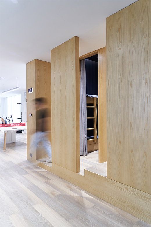 在办公环境中,给你一个的小憩场所。睡眠仓为了减少外部噪音,墙壁使用的是聚酯纤维材料的吸音板,同时内部设有电源插座和LED灯,还有专门的通风口使空气循环流畅。