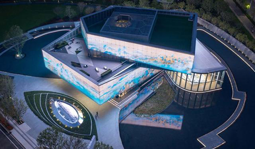 由Adrian Smith + Gordon Gill建筑事务所设计,位于深圳龙岗中央商务区,结合现代科技与传统文化,以“螺旋卷轴”+“立体园林”作为核心概念,盘旋上升的建筑形体辅以LED透明屏幕,构成朦胧宣纸画布,演绎国韵山水长卷,不同层次与朝向的体量悬挑,形成多维度立体花园,呼应四面八方的景致。