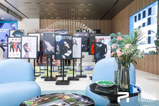 二楼的“发现”空间又为我们带来了不一样的时尚天地。里面有R x BAZAAR共同打造的封面橱窗随便拍拍都是一张张时尚大片,可以让每个人释放自己的张力去表现时尚。展示出的经典时尚大片向我们表达了要回顾经典,向时代致敬,对未来展望的思想,完美的将科技与时尚编织在一起,共同前行。