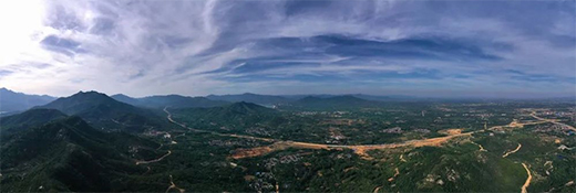 游客中心位于度假区南端,与主入口相连,场地内视野开阔,山水环绕,远眺便可一览泰山雄浑壮阔的景致。于是,“与山水相连,与自然融合”的建筑场景成为设计最初的设想。