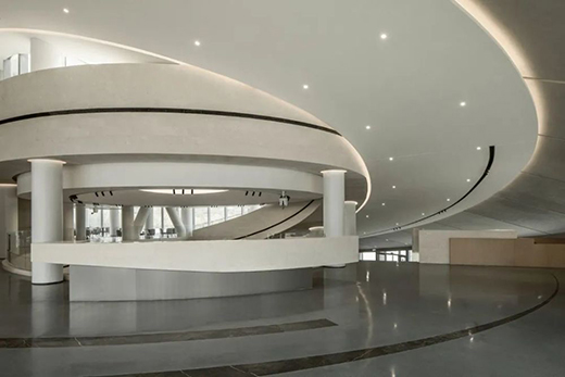 形式、结构、空间、三者的统一贯穿着项目始终。建筑连续的外部造型,对应的正是拾级而上的内部空间。中庭则在围合下应运而生。