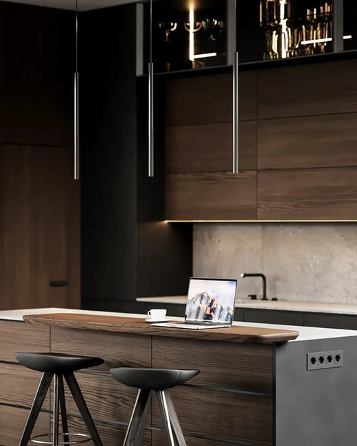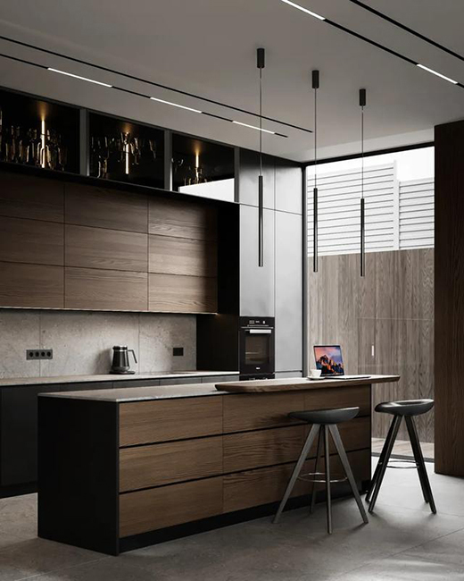 本别墅面积350㎡,设计师采用纹理自然的原木,搭配灰色调的材质,用黑色线条勾勒。在材质和色彩上都自带一刚一柔的基调。透露着简约而不简单,精致而不奢华的生活品质诉求。