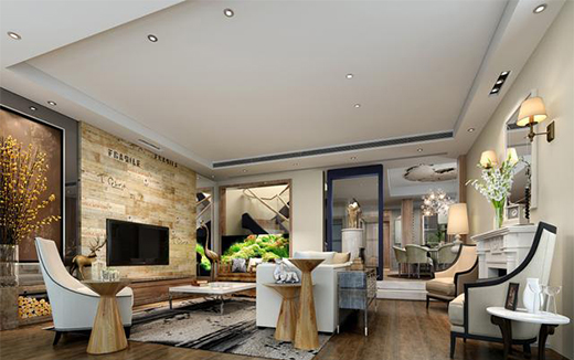 客厅以后现代主义作为设计思考,并以浪漫主义、个人主义作为哲学基础,舒畅、自然,强调人性经验在设计中的主导作用。