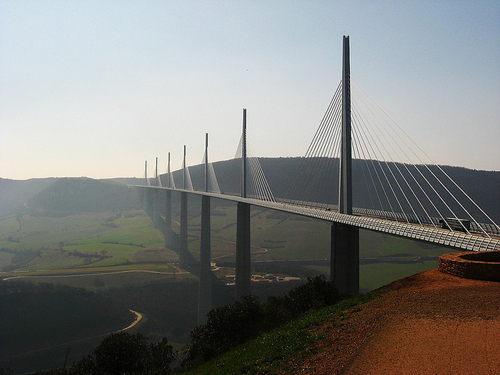 米洛大桥位于法国南部,横跨塔恩河谷,米洛大桥采用斜拉桥形式,由法国建筑工程师米歇尔·沃勒吉克斯 (Michel Virlogeaux) 和英国建筑大师诺曼·福斯特 (Norman Foster) 设计并于2004年建成通车,有效缓解了巴黎、蒙彼利埃和西班牙边境之间的公路压力。