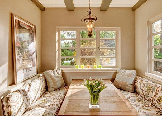 L型的卡座通常会设置在拐角的位置,它可以把看似没用的“死角”空间利用起来,使家居布置趋向于更合理,自然,与单面卡座相比,收纳空间也是增大了的,设置的类型参考单面卡座。
