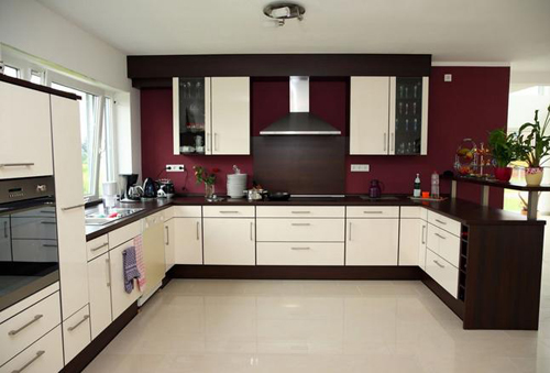 u型橱柜通常都会使用在比较方正的厨房内,但是由于需要在三堵墙旁边布置橱柜,这种厨房往往只有一扇门,有两扇门的厨房只要空间足够也可以做U字形的设计,这时,两扇门都会位于同一堵墙上,又或者两扇门虽然位于相对的两堵墙上,但由于门靠近同一面墙两侧的转角位,对其他三面墙布置橱柜没有太大的影响。由于同时要安置橱柜的需要,这种厨房在U字形橱柜两侧墙壁之间的净空宽度通常需要在220厘米以上,如果达不到这样的宽度要求,就只能够进行“一字形”或“L字形”布局了。