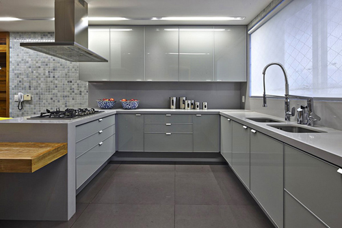 不论厨房的形式是直线型、L型还是U型,单排厨柜之间的距离最小必须保持120厘米,只有这样才能保证在厨房操作时的空间灵活度。