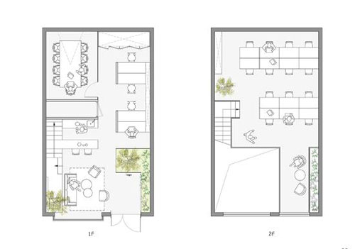 相对周围的沿街商业办公区域,这个郁郁葱葱的办公室犹如沙漠里的一颗橡树。穿过东南入口的一片室内“竹林”,挑空的公共休闲区域,沙发(沙发装修效果图)、茶几(茶几装修效果图)、吧台(吧台装修效果图)、落地窗给人一种“宾至如归”的感觉。另一方面,1层的独立办公区域被隐藏在植物后,办公区视野尽端为精心营造的室内景观。会议室则被安置在最深处,整个空间强调了温馨的生活理念,而弱化办公空间的紧张性和冷漠性。