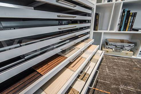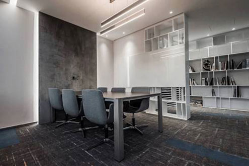 而在总经理办公室和客户接待室则选用了VOXFLOR?比较高端的以扎染为设计理念的Twilight 系列地毯。