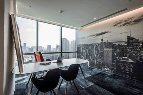 姜昶臣(湖北)建筑装饰设计有限公司(JCD)的办公室就是这样一个典型例证。公司创始人姜昶臣毕业于纽约室内设计学院,取得硕士学位后曾荣获纽约杰出设计师奖章。回国后,他创立了自己的设计事务所,并于去年将办公室迁址武汉天地商圈环球智慧中心,亲自完成了办公室的室内设计。没有得天独厚的自然环境为衬,也缺乏空间结构上雕梁画栋的宽阔尺度,在这样传统商业楼宇的方寸之间,姜昶臣用功能区域的起承转合、细节质感上的拿捏把控,打造出时尚纽约风范的国际化工作环境。