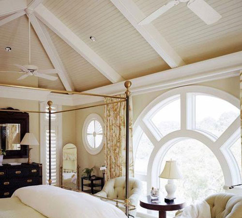 拱形的窗户、白色的窗框以及旁边花纹繁复的窗帘都给卧室增添了不少独特的风情。相信在这样的卧室中入眼就是暖暖的阳光,定会让人觉得温馨舒适。