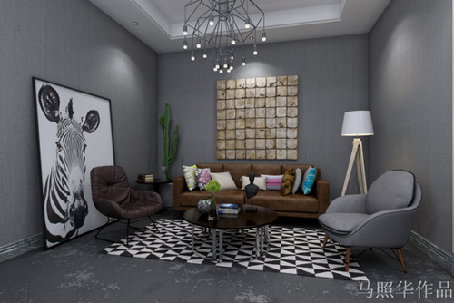 影音室是全家共同放松,度过愉快时光的地方。马照华将其设计为以灰色为主调的空间,尽显质感。黑白拼接地毯在视觉上显得有层次感,也与斑马画相搭配。结束了一天的疲惫之后,窝在柔软的沙发上,和妻子儿女共赏佳片。这小小的一方天地,便是幸福之所在。