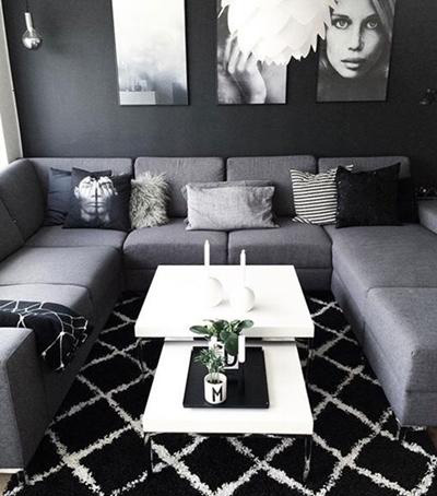 黑白灰是永恒的经典,但是不同的设计形式依然会有不同的效果,这样的设计中暗色调大面积铺设让客厅看起来非常酷,这样的设计男人一般都会很喜欢,但是作为女孩子就会觉得有点缺少温馨感。