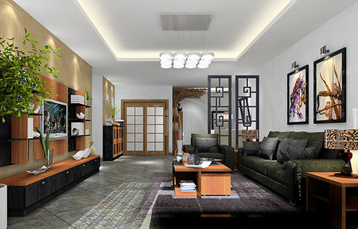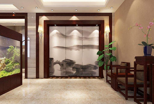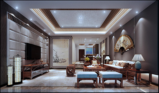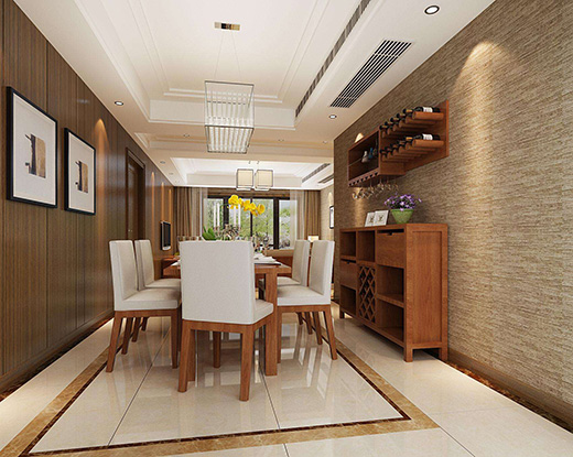 “新中式”装饰风格的住宅中,空间装饰采用简洁、硬朗的直线条。
