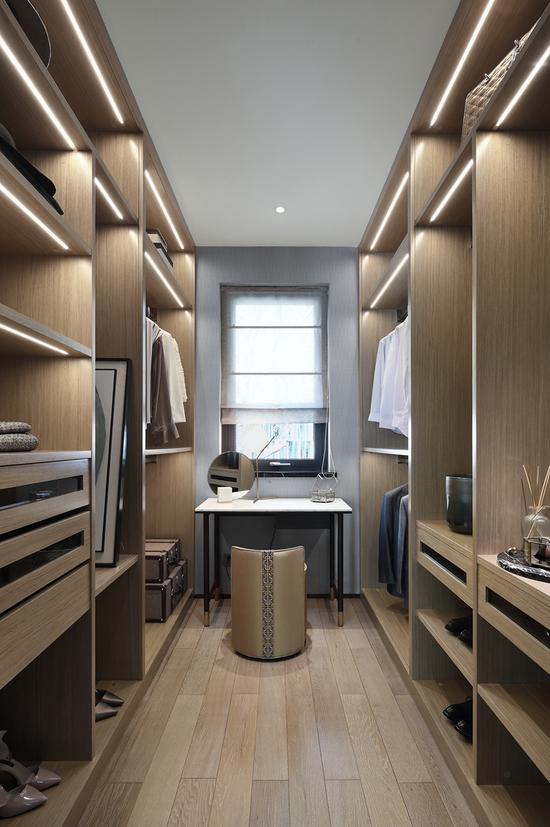 都说衣帽间有穿越的法门,原木色的格子聚拢排列,每间格子都有着自己的责任,所以衣帽间的气场多少有些神秘,当你从这里离开时,首先穿越了自己。