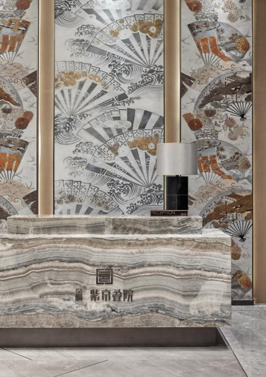 《南京金隅售楼处》是我们最近在南京的老山边上完成的一个项目,这个楼盘往西看的时候,老山有一个整个的形态可以很清楚地呈现,所以我们觉得这里面要选择的当地元素是山,有山肯定就要有水,因此在楼盘里也做了很多水景。山水之后是云和光的表现,用了类似的灯具来做云的表现,光影也是随处可见。