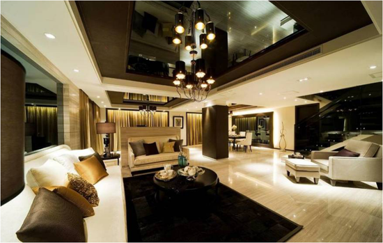 这套北京泰禾红御别墅,这里最早是卖的二百多平单坡顶别墅,屋顶会显得很小。设计的时候我们在窗帘上面做了个大镜子,原来的在户外看到的单坡顶在镜子反射下来就变成是双坡顶。所以来购房的人在外观看这个是一个小别墅,但是进来发现这个和他原来的衡量的内部空间是有非常大的差异,给他相对震撼的效果,就对房型有特别的印象。