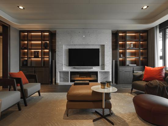 虽然项目的主要使用者只有男女主人,但由于客户父母及亲戚的日常到访,设计师试图将起居室打造成不同于会客厅的,更为轻松舒适的空间模式。