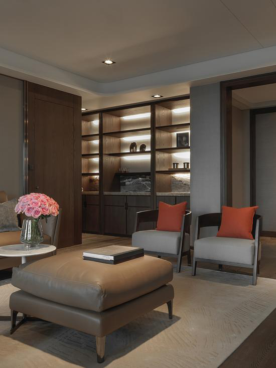 材质的运用并非浮于表层,设计师尝试以温润皮质饰才搭配鲜明色调创造视觉焦点,或是肌理丰富的大理石墙,或是金属分割线条与过往相比,它们都更加强调舒适与和谐的色调,避免陷入阴郁的灰色空间。