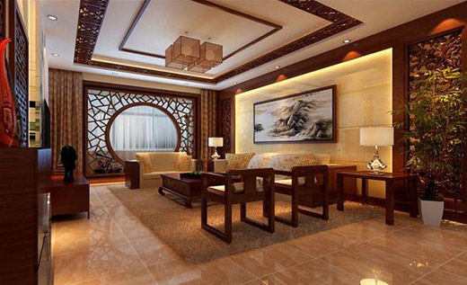 客厅中间的隔断看起来十分个性,中间还有圆形的设计,就像是古代的房间一样。喜欢精致装修自己房子的人,大多都是有一个很好的生活态度的,现在的装修风格参差不齐,选择自己喜欢的就是最正确的,很多的人都是比较喜欢这种风格的,因为感觉比较有生活的氛围。色彩的大致风格,让人感受到浑厚的文化底蕴,感觉真的是超级好看!