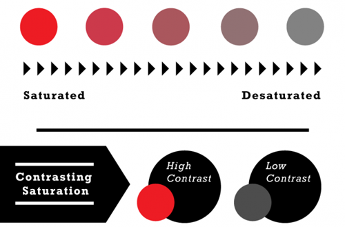 色彩的强度最强的时候,也就是饱和度最高的时候,是最纯粹的色彩。饱和度越高色彩越鲜艳,饱和度越低越接近于灰色。同一色彩不同饱和度下的色彩能够构成对比,不同色彩不同饱和度下也能构成对比。