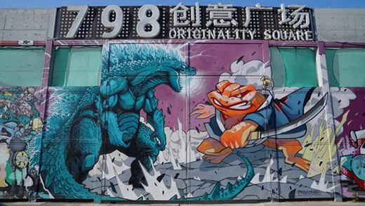 在798,你能看到斑驳的红砖瓦墙,错落有致的工业厂房,纵横交错的管道,墙壁还保留着各个时代的标语。马路上穿着制服的工人与打扮时尚前卫的参观者相映成趣,历史与现实、工业与艺术在这里完美的契合在了一起。