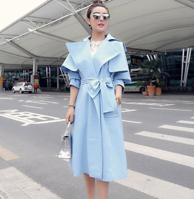 长款的洒脱比起短款的利落,各有千秋,高个子的姑娘自然会偏向这一点。况且长款对于气质的拿捏效果极佳。只不过空灵的色彩会改变很多事情,这样温软的蓝,让休闲风都充满了含情脉脉的感触。