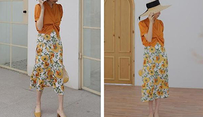 短款上衣+半身裙 喜欢温柔中带点酷的味道?这款衬衫绝对符合,短款的设计,V领的交叉设计,展现你更美的锁骨,以及下摆的松紧设计处理,看起来更加有小心思,搭配下装的半身裙,印花的颜色刚好与上衣的颜色相呼应,也算是找到了与它搭配的主,一套搭配起来就很有夏季的活泼浪漫气息!
