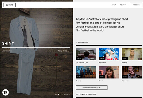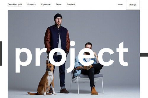 在诸多设计案例中,最值得注意的是Deux Huit Huit 。横跨首页主图的文字的运动方式,当它穿越图片、背景的时候,是如何确保它的可读性的。