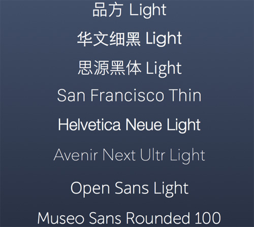现代字体都有多种字重设置:Regular,Light,Thin和Ultralight