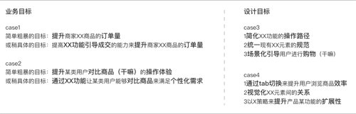 我个人觉得这个定义已经属于哲学层面的概念,理解起来还是比较抽象和复杂的,我自己读过很多遍这段内容但在分析时还是很难运用起来,而且很多项目其实只有一个总体的目标并不会细化到这样的颗粒度。于是我去我们平台查阅了一些设计师的分析部分内容,整理组织一下发现大致的信息是这样的: