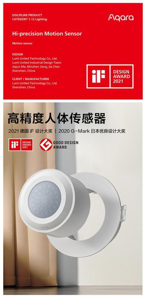近日,「2021 年德国 iF 设计奖」评选结果正式出炉,Aqara 旗下新品高精度人体传感器凭借独特出众的设计及优秀的交互荣获 2021 德国 iF 设计大奖,此前该产品就曾斩获2020 G-Mark 日本优良设计大奖。